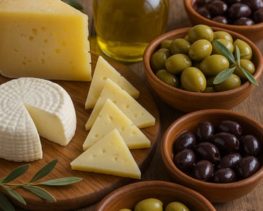 From graviera to anthotyro and staka, Cretan cheeses are a highlight — often served with bread, honey, or raki.