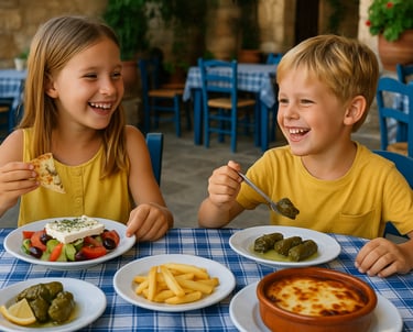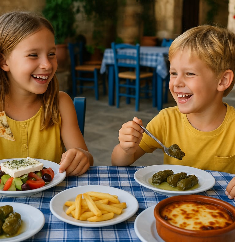 Heraklion’s food scene is perfect for families: fresh, healthy, and full of variety. Many tavernas welcome kids warmly.